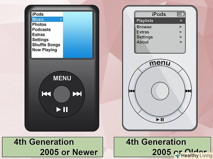 Зверніть увагу на кнопки управління iPod.у модельного ряду iPod Classic кнопки управління розрізняються по виду і розташуванню. По кнопках управління можна дізнатися покоління iPod.- 4-е покоління і нові моделі iPod Classic оснащені колесом управління, яке являє собою круглу сенсорну панель;