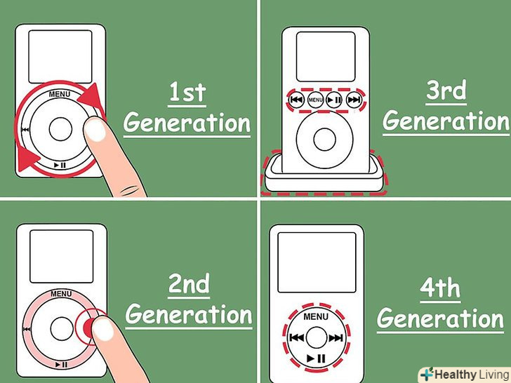 Переконайтеся, що перед вами iPod Classic.це одна з перших моделей iPod, причому їй не завжди присвоювався номер покоління. Модельний ряд iPod Classic починається з простого iPod (представлений в 2001) і закінчується iPod Mini.- Якщо у вашого iPod прямокутний і відносно громіздкий корпус без сенсорного екрану, швидше за все, це iPod Classic.