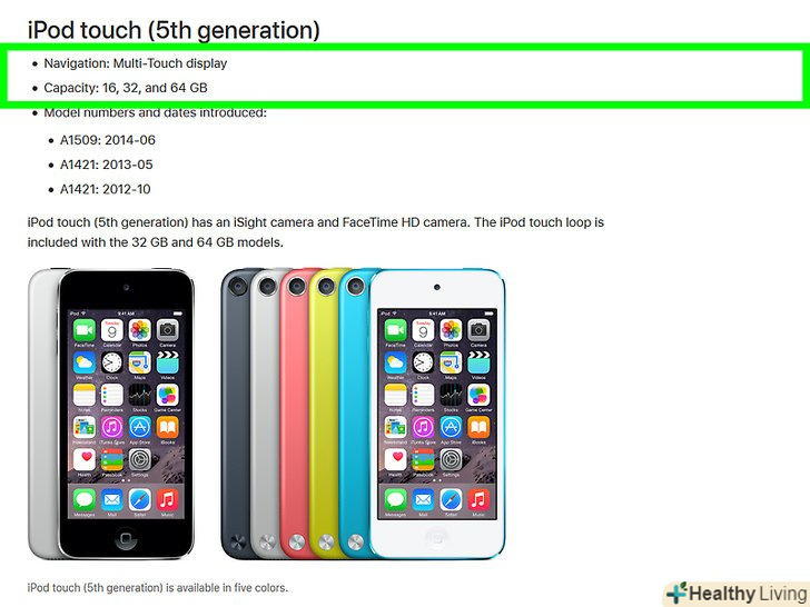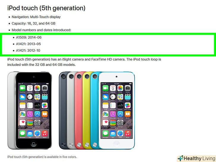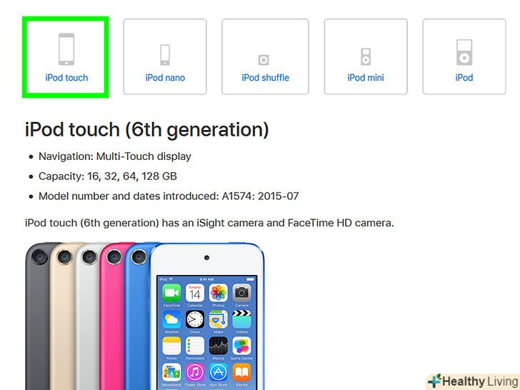 Перейдіть на сторінку "визначення моделі iPod" в браузері комп'ютера. її адреса: https://support.apple.com/ru-ru/ht204217. на цій сторінці описані різні моделі iPod.