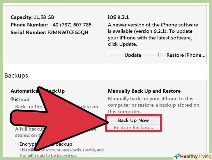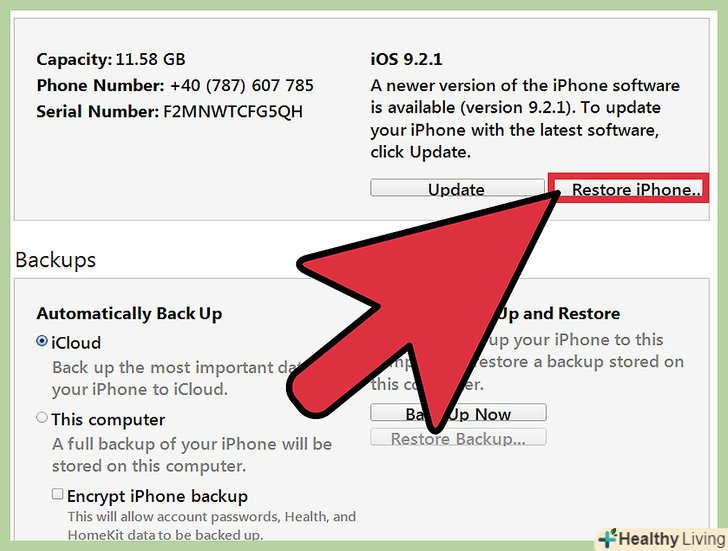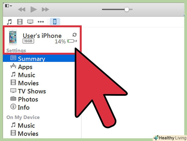 Виберіть свій телефон, коли він з'явиться в iTunes.щоб вибрати телефон, дочекайтеся, поки з'явиться значок невеликого телефону. Він повинен з'явитися під налаштуванням звуку, в лівій частині екрана.[10] натиснувши на значок, ви відкриєте панель статистики телефону, де зможете відновити пристрій або поглянути на особисту статистику.