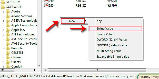 Прочитайте розділ "попередження", перш ніж продовжити. правою кнопкою миші клацніть по параметру «TrueTypeFont«, а потім клацніть по» створити «gt;»строковий параметр".