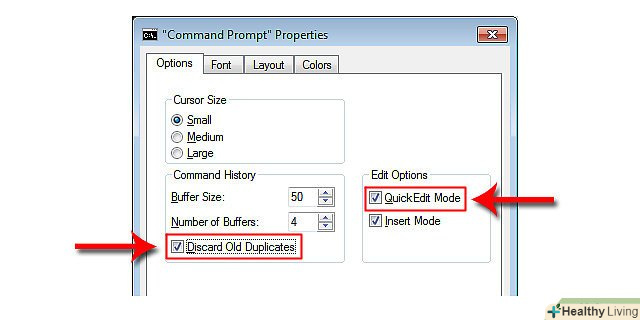 Перейдіть на вкладку "Загальні «і встановіть прапорець у»Швидка вставка".тепер в командному рядку можна користуватися функцією»скопіювати і вставити".- Також рекомендуємо встановити прапорець у «відкидати повторення".