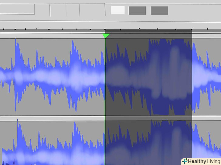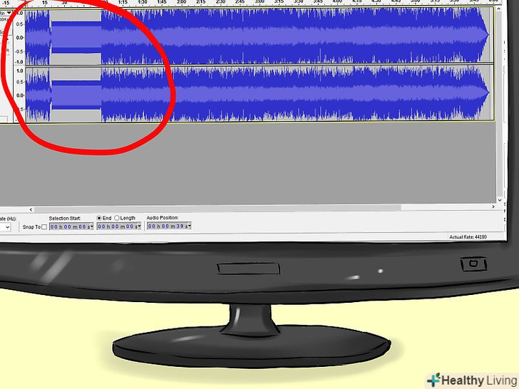Натисніть на кнопку плей і прослухайте пісню до місця з неформальним словом. натисніть на кнопку пауза, і збільште це місце пісні на графіку.- Продовжуйте збільшувати і прокручувати Графік до тих пір, коли ви зможете помістити курсор точно в те місце лінії, звідки починається нецензурне слово.