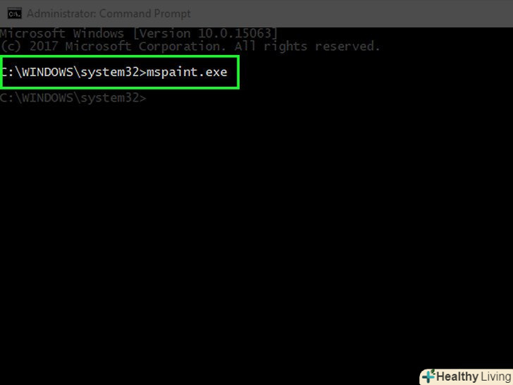 Запустіть програму з папки Windows / System32. наприклад, введіть mspaint.exe, щоб запустити програму Paint. Важче відкрити програму, яка знаходиться в певному каталозі, як Ви вже зробили з командним рядком і Блокнотом за допомогою графічного інтерфейсу користувача.- Запустіть програму або відкрийте файл, які знаходяться в каталозі. Перейдіть в запущений Блокнот і введітьПривіт, світ!. Потім натисніть "Файл" gt; «Зберегти як», в рядку «Ім'я файлу» введіть «Helloworld.txt "і збережіть файл у папці "mybatch" на диску C:. Перейдіть в командний рядок, і ви опинитеся в папці «Documents and setting». Тепер введіть cd c:\mybatch, натисніть ↵ Enter, а потім введіть helloworld.txt. Зазвичай командний рядок ще раз відривати не потрібно, але тут все трохи складніше, тому що ви не переходите відразу в каталог «C:».