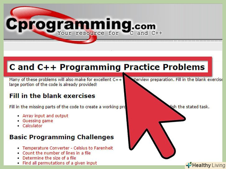 Почніть свій перший проект.виберіть хороший вступний проект, який дозволить вам випробувати ваші нові навички. В інтернеті існує безліч пропозицій і посібників з цієї теми. Наприклад, ви можете почати зі створенняпростих веб-сайтів на HTML , простихбаз даних і функцій на PHP Абопростих програм на будь-якій з мов, що вимагають використання компіляторів.