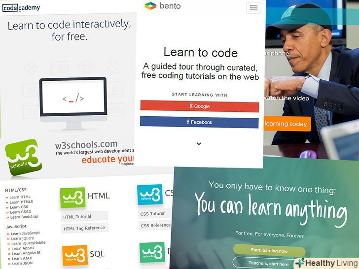 Знайдіть безкоштовні онлайн-ресурси, присвячені вашій обраній мові.інтернет - це скриня зі скарбами, який зберігає в собі безкоштовні посібники, курси і відео, присвячені мові, який ви вирішили вчити. Ви можете вивчити основи майже будь-якого вступного мови буквально за день.- Ось тільки кілька популярних сайтів: Bento, CodeAcademy, Code.org, html.net, Khan Academy, Udacity, W3Schools та багато інших.