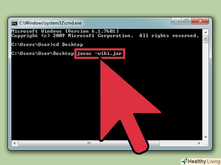 Скомпілюйте програму.як тільки ви опинитеся в потрібному каталозі, можете скомпілювати програму – введіть в командний рядокjavac filename.javaі натисніть enter.- Якщо у вашій програмі є які-небудь помилки або виникли труднощі з компіляцією, командний рядок Вас про це попередить.
