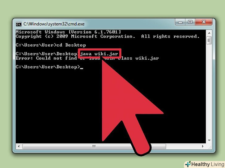 Запустіть програму. введітьjava filenameі натисніть ↵ Enter. Звичайно ж, замініть" filename " ім'ям вашого файлу.- Після натискання↵ Enter ваша програма повинна запуститися. Якщо ви отримали повідомлення про помилку або ваша програма не працює, використовуйте метод усунення помилок.