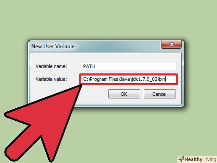 java-versionі натисніть ↵ Enter. Грунтуючись на версії Java, зазначеної в першому рядку, введіть в командному рядкуset path= % path%;C:\Program Files\Java\jdk1.5.0_09\binі натисніть ↵ Enter. Замініть Jdk1.5. 0_09 версією Java, яка у вас встановлена.- Вводите цю команду, коли будете перебувати в каталозі з вашою програмою Java.