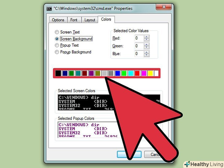 Введітьcolor z, щоб отримати список всіх кольорів і цифри або букви, які їм відповідають. перші буква / цифра - це колір фону, а друга — колір тексту.