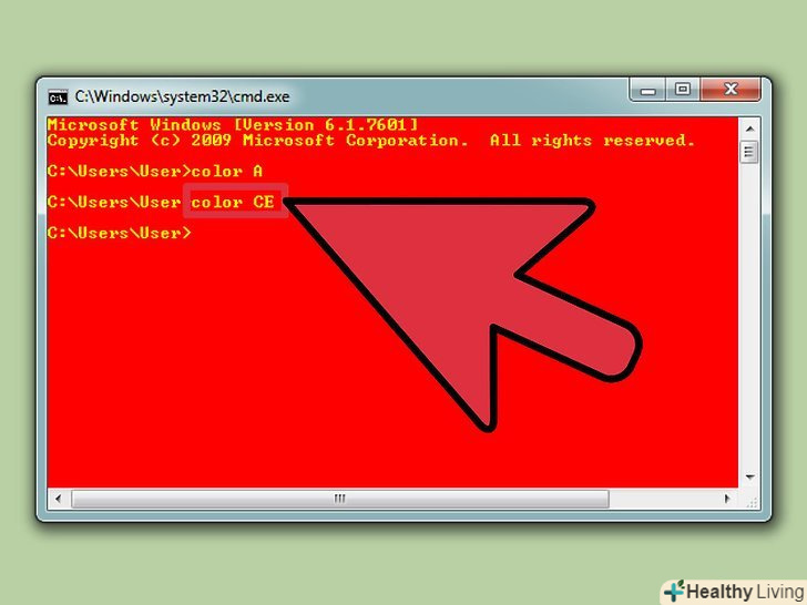 Для зміни кольору тексту, а також його фону, введітьcolor ce, щоб вийшов світло-жовтий текст на світло-червоному тлі, або будь-яку іншу комбінацію. перша буква / цифра позначає колір фону, а друга співвідноситься з кольором тексту.