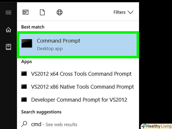 Введітькомандний рядок у рядку пошуку меню «Пуск».розпочнеться пошук командного рядка, який відобразиться у верхній частині меню»Пуск".- У Windows XP Натисніть "виконати «у правій частині меню»Пуск".