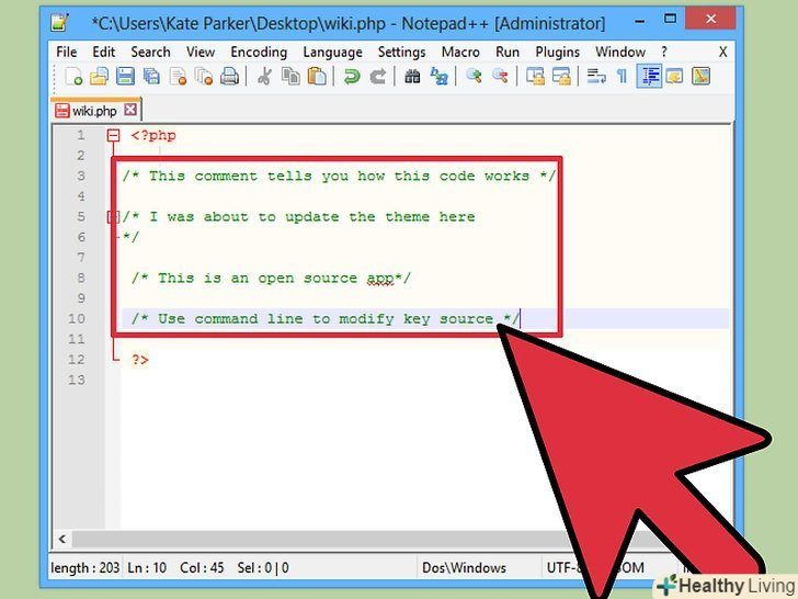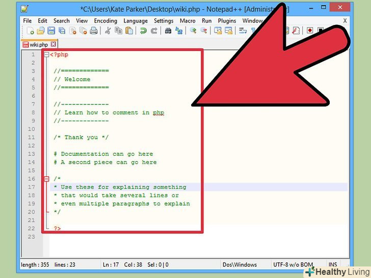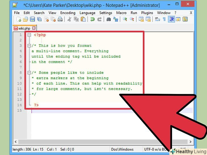 Для написання довгих коментарів або тестування коду скористайтеся багаторядковими коментарями.багаторядкові коментарі дуже корисні при написанні довгих пояснень і для запобігання обробки сегмента коду. Прочитайте розділ "використання«, щоб дізнатися про деякі поради щодо використання" багаторядкових коментарів.[2]lt;?php / * ось як варто форматувати Багаторядковий коментар. Весь текст До кінця мітки буде включений В коментар * / / * деяким подобається включати * на початок кожної лінії * Додаткові маркери. Це покращить * читабельність великих коментарів, хоча і не є обов'язковим. */ ?gt;