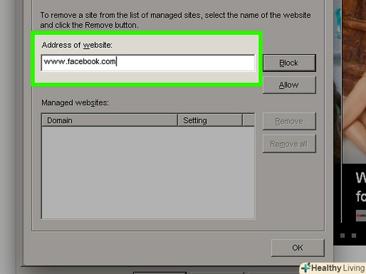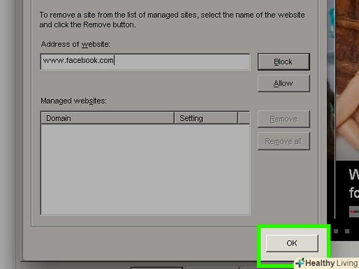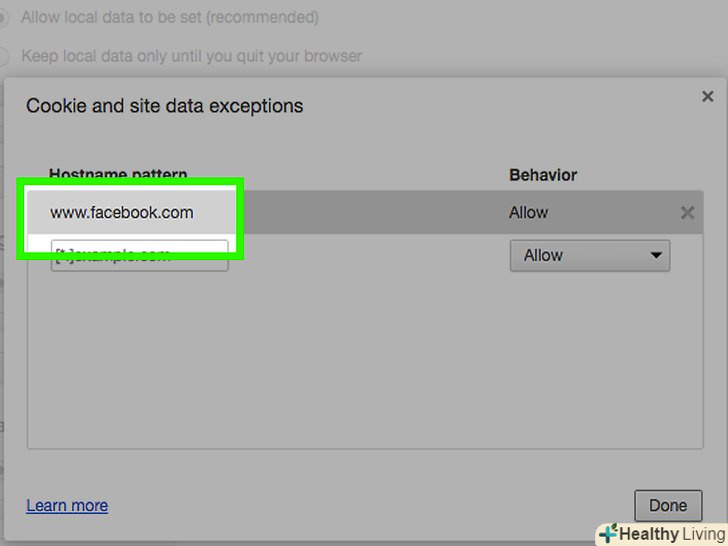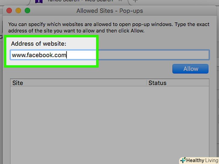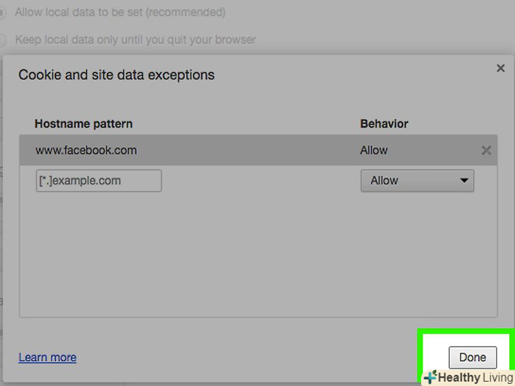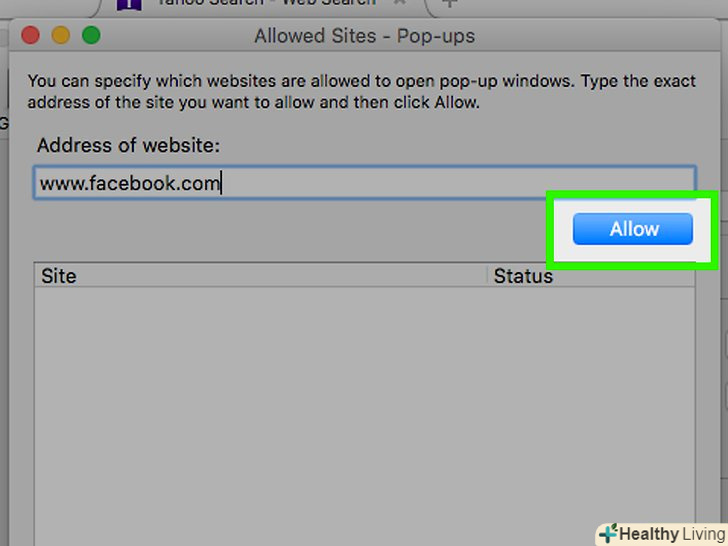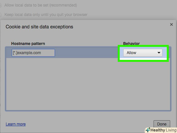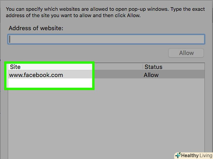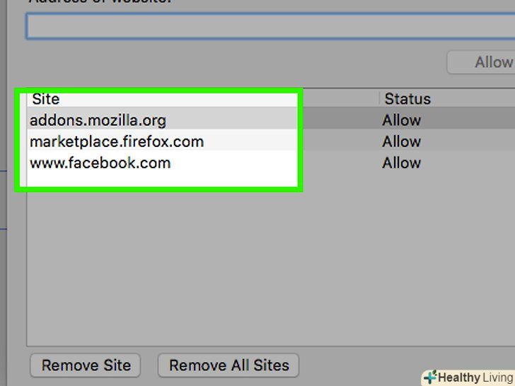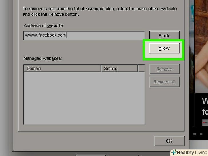У меню» Правило "виберіть " Дозволити". це меню знаходиться в правій частині вікна.- Якщо в меню» Правило «відображено» блокувати «або» видаляти при виході«, клацніть по меню і виберіть»Дозволити".