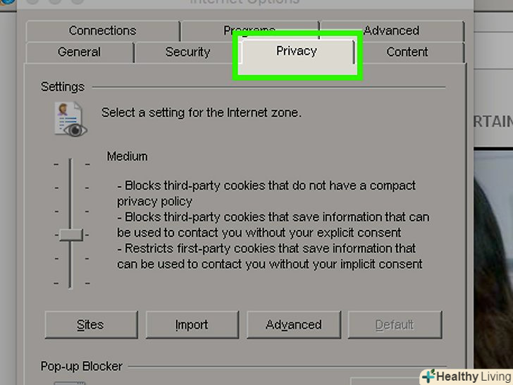 Натисніть < span class="nowrap" title="This is not a clickable button; it illustrates the button one should find." style="font-family: Segoe UI, Frutiger, Frutiger Linotype, Dejavu Sans, Helvetica Neue, Arial, sans-serif;letter-spacing:0px;padding:0em .6em; border:1px solid; border-color:#AAA #555 #555 #AAA; -moz-border-radius: 0px; -webkit-border-radius: 0px; border-radius: 0px; background-color: #F2F2F2; background-image: -moz-linear-gradient(top, #FCFCFC, #E0E0E0); background-image: -o-linear-gradient(top, #FCFCFC, #E0E0E0); background-image: - webkit-linear-gradient(top, # FCFCFC, #E0E0E0); background-image: linear-gradient(top, #FCFCFC, #E0E0E0);">Конфіденційність.ця вкладка знаходиться у верхній частині вікна "Властивості оглядача".