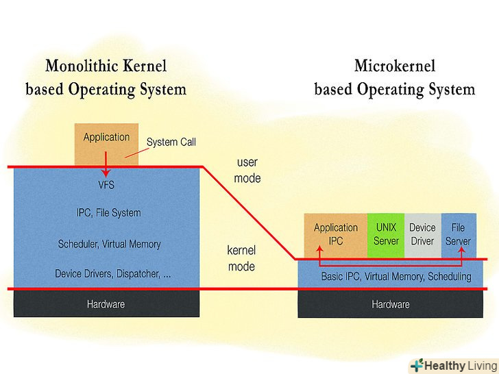 Визначтеся з дизайном.існують монолітні ядра і мікроядра. Монолітні ядра виконують всі служби в ядрі, в той час як мікроядра мають маленьке ядро в поєднанні з користувальницької реалізацією сервісів. Загалом, монолітні ядра швидше, але мікроядра мають кращу ізоляцію і захист від можливих несправностей.