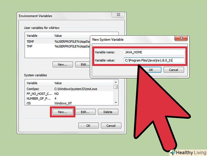 Ви хочете встановити Java Home? Змінна java Home, як правило, записується так: JAVA_HOME, і встановлюється в папку Java.