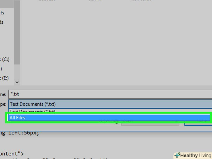Виберіть пунктВсі файли у випадаючому меню.це дозволить вам зберегти файл Блокнота у вигляді будь-якого типу програм.