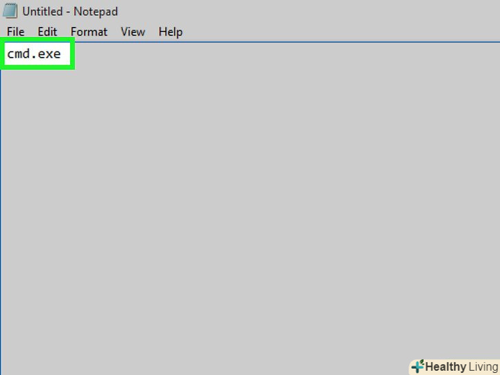 Введіть ім'я виконуючого файлу для виведення командного рядка. введіть cmd.exe в Блокнот.