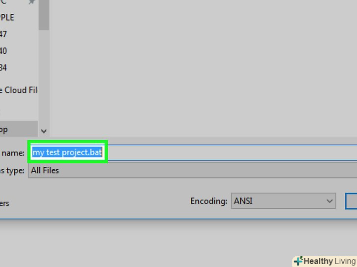 - Наприклад, щоб зберегти пакетний файл з ім'ям "кавуни", введітькавуни.bat у полі "ім'я файлу".