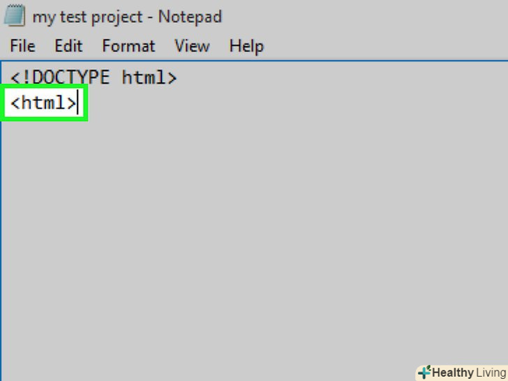 Додайте мітку HTML. введіть в Блокнотhtmlі натисніть ↵ Enter.