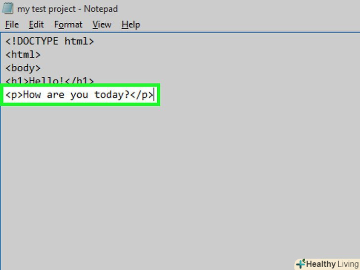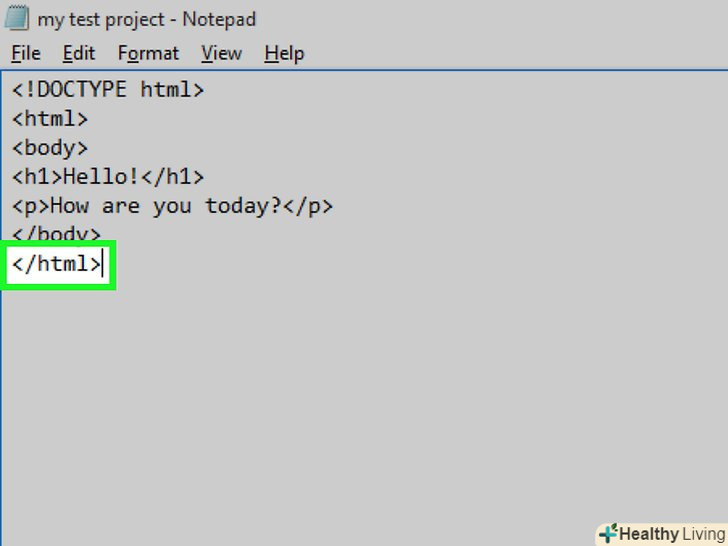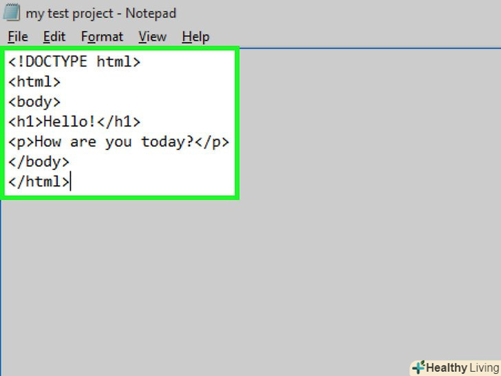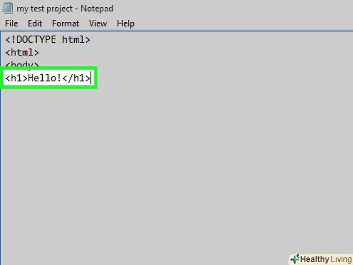 - Наприклад, щоб створити сторінку з заголовком " Привіт!", введіть в Блокнот