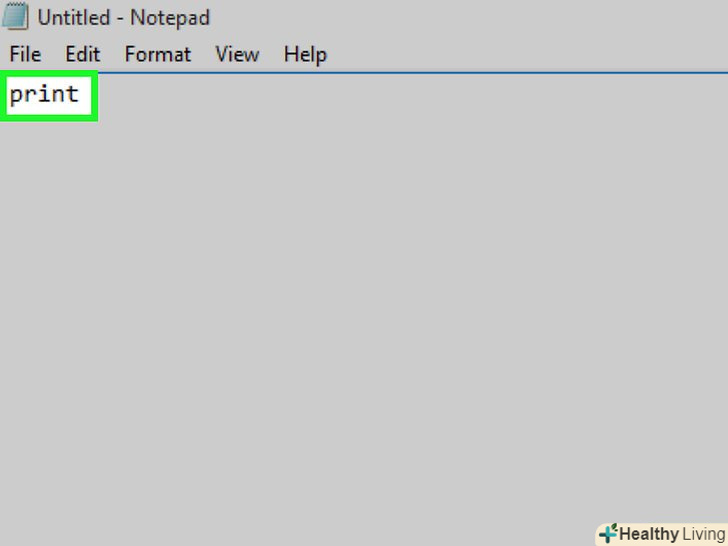 Введіть команду "print".введіть в Блокнотprint (". Переконайтеся, що між символами немає пробілів.