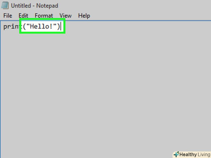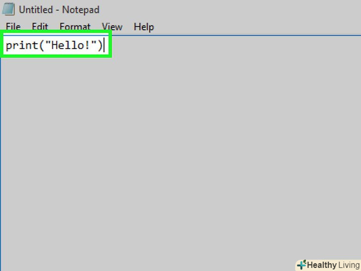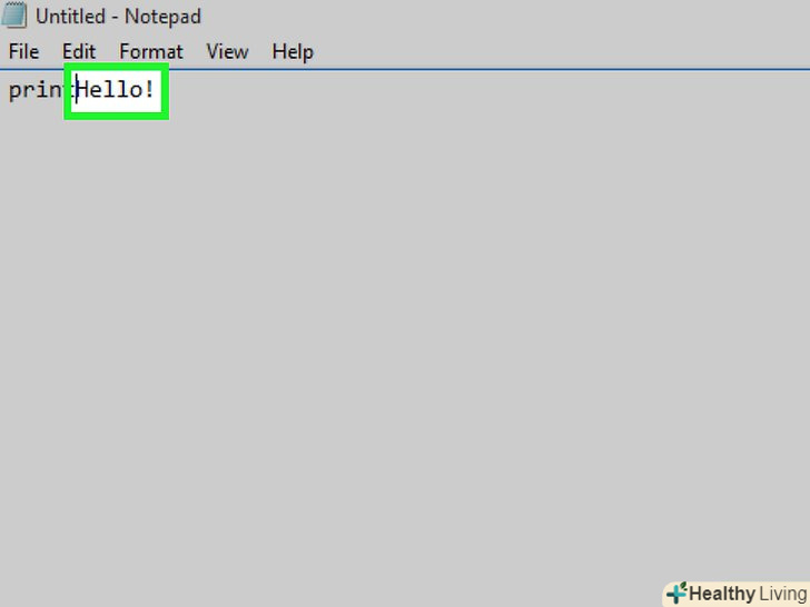 Запустіть Блокнот. за допомогою команди "print" в Python можна відобразити будь-який бажаний текст.