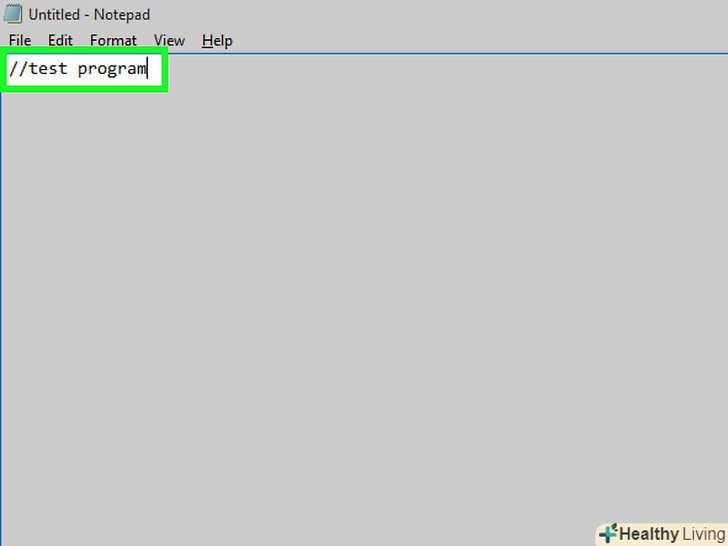 Додайте назву програми. введіть/ /, а потім назву програми (наприклад, «Моя перша програма»). Будь-який текст в рядку, що йде після двох косих рис, відобразиться як звичайний текст (не будучи частиною програми).- Наприклад, щоб позначити свою програму як «програма 1», Введіть в Блокнот: