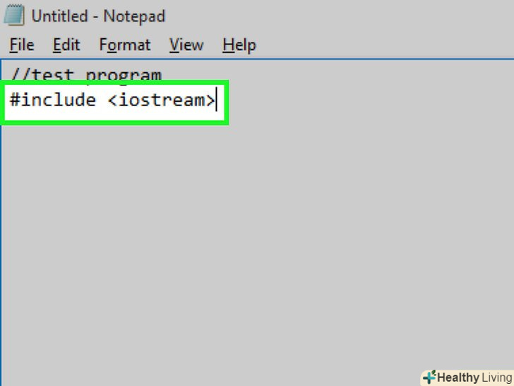 Введіть директиву препроцесора. введіть# include lt;iostreamgt;і натисніть ↵ Enter. Ця команда повідомляє C++, що наступні рядки коду потрібно запускати у вигляді програми.