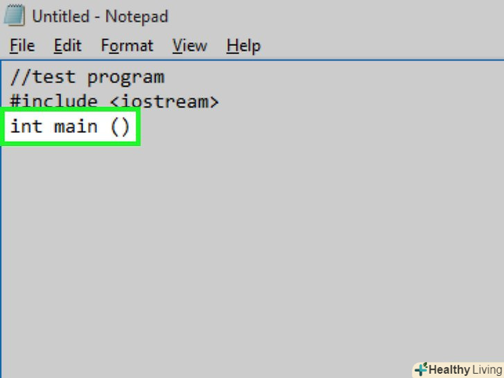 Оголосіть функцію Програми. введітьint main ()і натисніть↵ Enter .