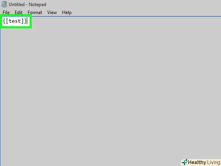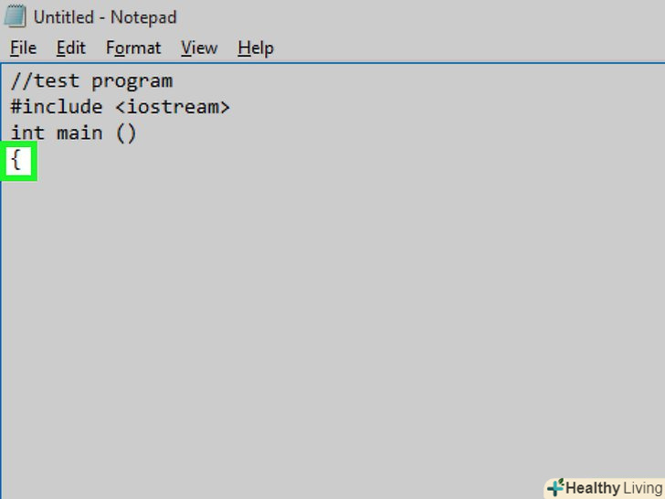 Додайте відкриту дужку. введіть в Блокнот{і натисніть ↵ Enter. Основний код програми буде укладений між цією відкритою дужкою і її закриває парою.