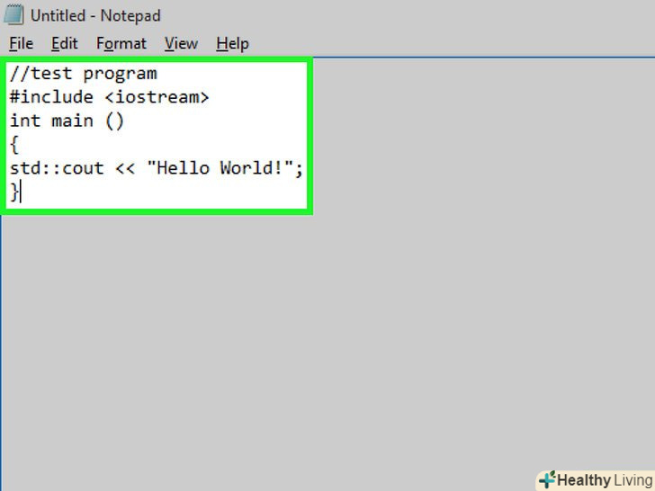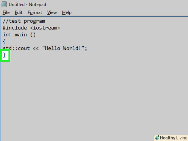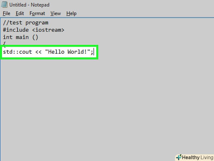 Перегляньте свою програму. Вона повинна виглядати наступним чином:/ / назва програми#include lt;iostreamgt;Int main (){Std::cout lt;lt; "Hello World!";}