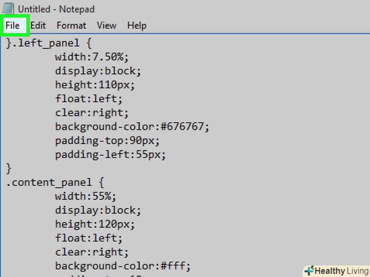 Натисніть наФайл у верхньому лівому куті вікна «Блокнот», щоб розкрити випадаюче меню.