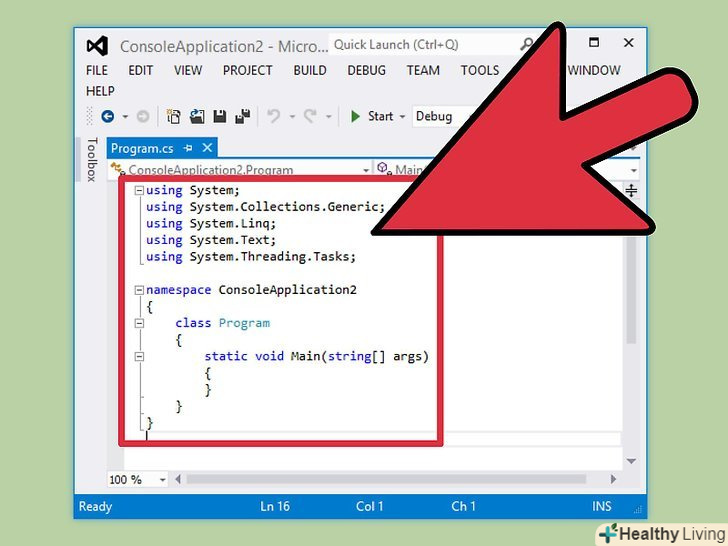 Натисніть "ОК".ви повинні побачити наступне:Using System; Using System.Collections.Generic; Using System.Text; Namespace ConsoleApplication1 { Class Program { Static Void Main(String[] Args) { } } }