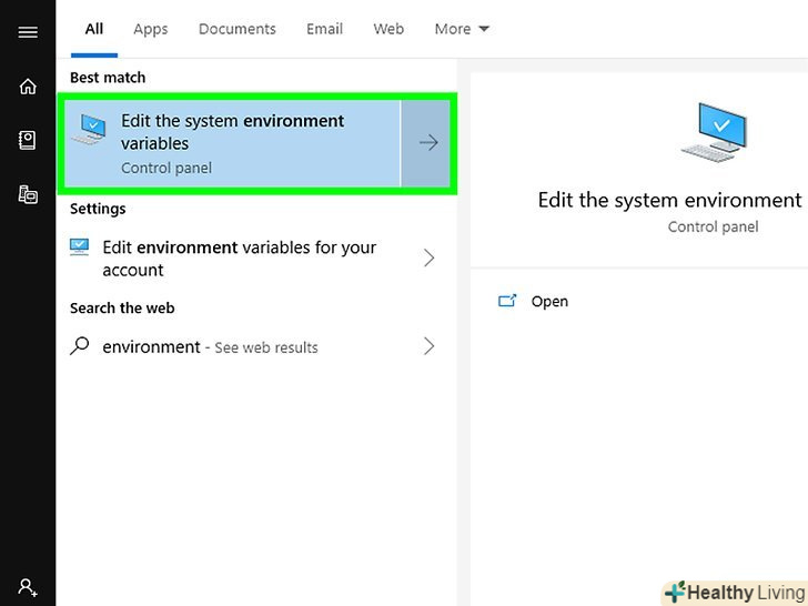 - У результатах пошуку клацніть по "зміна системних змінних середовища".