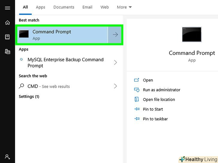 - У результатах пошуку клацніть правою кнопкою миші по "командний рядок «і в меню виберіть»Запуск від імені адміністратора".