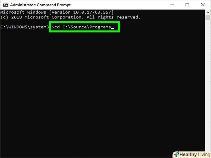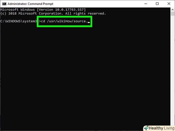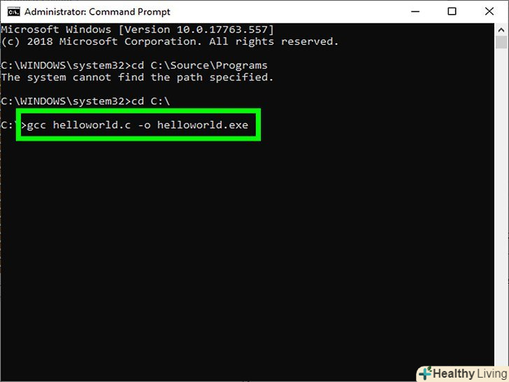 Перейдіть в папку, в якій зберігається файл з вихідним кодом.- Наприклад, якщо файл з вихідним кодом " helloworld.c " знаходиться в папці C:\Source\Programs, введітьcd C:\Source\Programs.