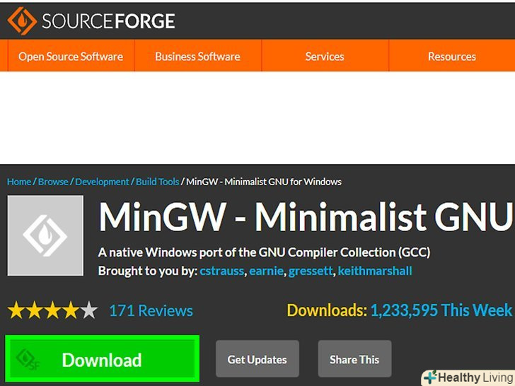 Скачайте Minimalist GNU для Windows (MinGW).цю версію GCC для Windows досить легко встановити. Інсталяційний файл можна завантажити на цьому сайті.[2]