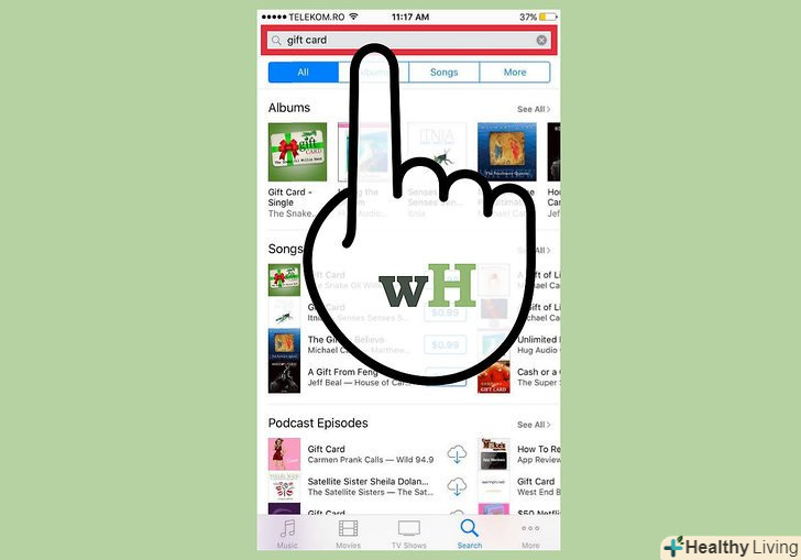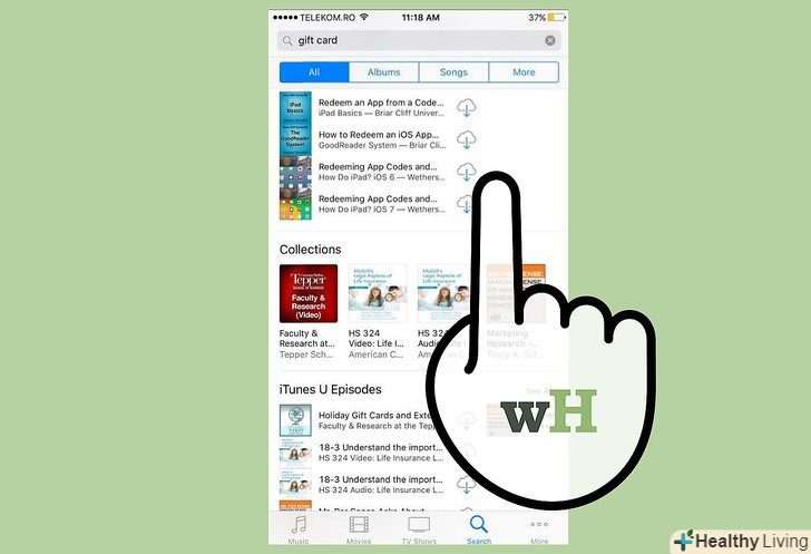 Виберіть подарункову картку.знайти розділ з подарунковими картами дуже просто, для цього можна скористатися пошуковим полем в Apple store. Введіть в пошукове поле слова "подарункові карти" і ви побачите кілька результатів пошуку. Ви можете придбати подарункову картку через електронну пошту або придбати тверду копію подарункової картки, яка буде надіслана одержувачу.- Якщо хочете переслати кошти безпосередньо, відправте подарунок через електронну пошту.
