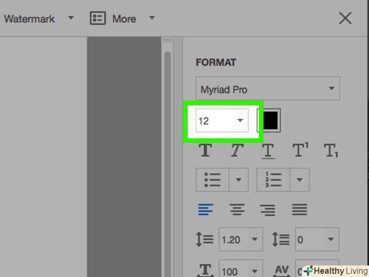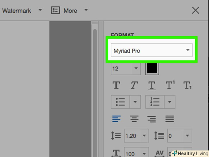 НатиснітьA.ця кнопка знаходиться праворуч від панелі інструментів над документом. Відкриється діалогове вікно.- Відкрийте випадаючий список шрифтів, щоб змінити шрифт.