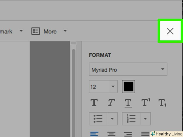 НатиснітьX. ця кнопка знаходиться у верхньому лівому куті діалогового вікна.