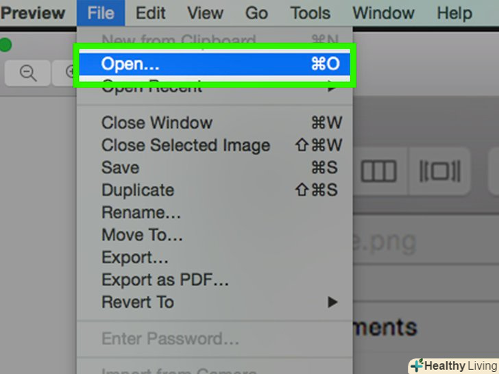 Відкрийте PDF-документ у програмі "перегляд".для цього двічі клацніть по значку цієї програми, який виглядає як пересічні знімки на синьому тлі. Потім у рядку меню у верхній частині екрана натисніть "Файл «gt;» Відкрити«, виберіть потрібний PDF-документ, а потім натисніть»Відкрити".- "Перегляд" є програмою для перегляду зображень і встановлюється в більшість версій Mac OS.