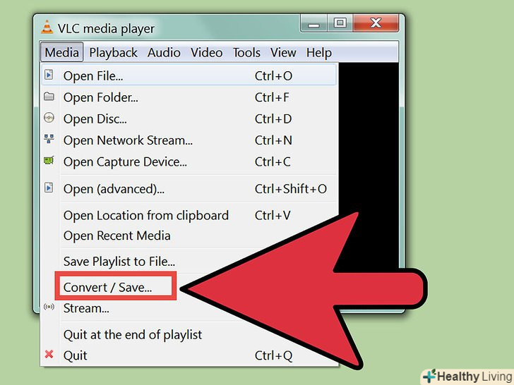 У навігаційній панелі VLC Media Player натисніть «медіа»(Media) – «конвертувати/зберегти»(Convert/Save).