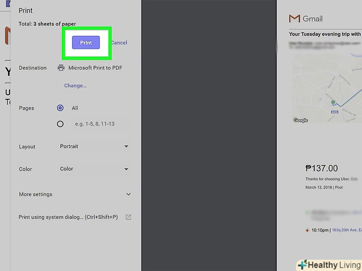 Натисніть кнопкуДрук.ця велика блакитна кнопка розташовується або в лівому стовпці або в нижньому правому куті спливаючого вікна.