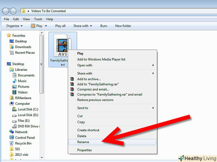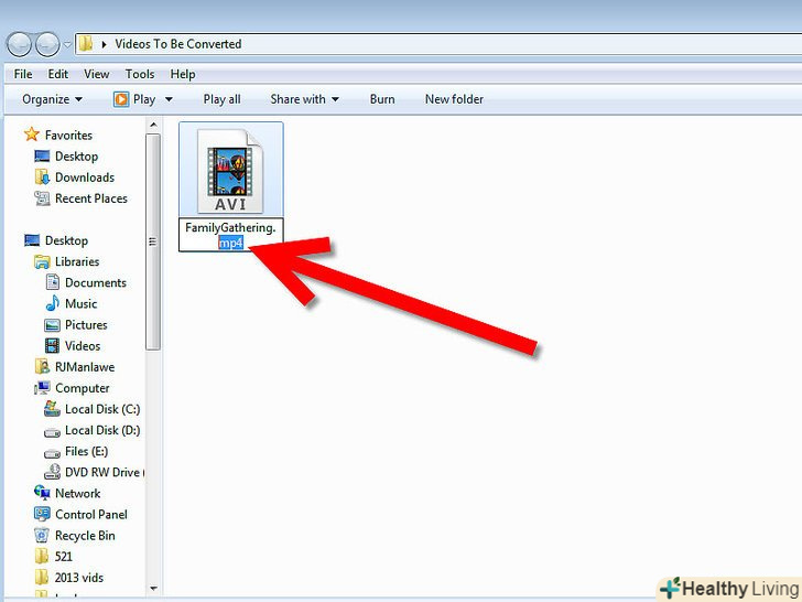 Змініть розширення файлу на. MP4 (файл може мати розширення .AVI або .WMV).
