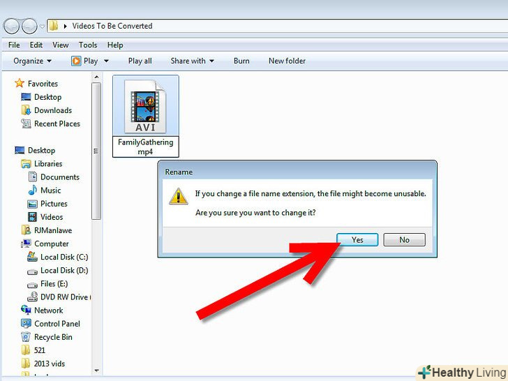 У вікні з попередженням " після зміни розширення цей файл може виявитися недоступним. виконати зміну?«натисніть»Так".