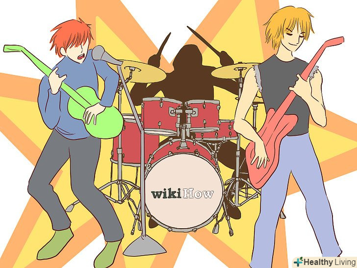 - Якщо ви збираєтеся виконувати "рок" або "кантрі", то цілком можна обійтися одним вокалістом. Для таких груп не потрібно кілька акомпануючих голосів. Зазвичай групи таких стилів складаються з соліста і музикантів, які грають на гітарі, бас-гітарі і барабанах.[3]