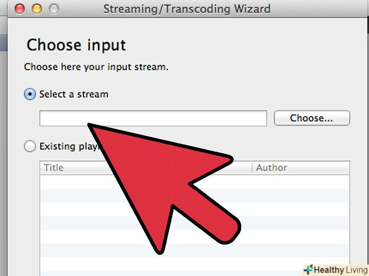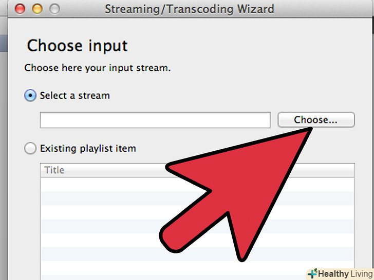 Клацніть по кнопці "Додати" і виберіть файл для потокової передачі.у нижній частині вікна клацніть по трикутнику поруч з кнопкою " відтворити "і виберіть"потік".