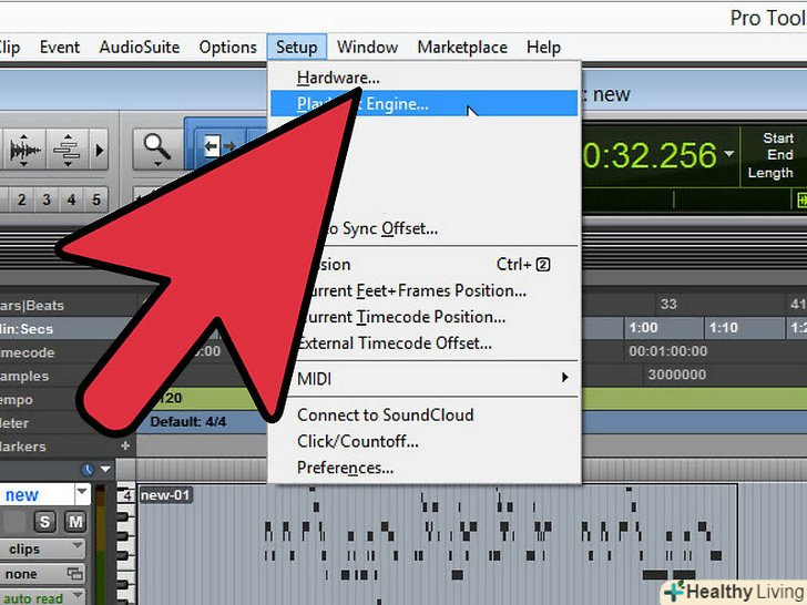 Відкрийте вікно Playback Engine.запустіть Pro Tools, натисніть на "Setup" і виберіть Playback Engine.- Змініть ліміт використання ЦП. У вікні Playback Engine натисніть на випадаюче меню поруч з "CPU Usage Limit" (межа завантаження ЦП) в секції HD TDM параметрів для зміни обсягу пам'яті, який буде використовувати Pro Tools. Pro Tools дозволить вам виділити максимум 85%, якщо у процесора вашого комп'ютера всього одне ядро.